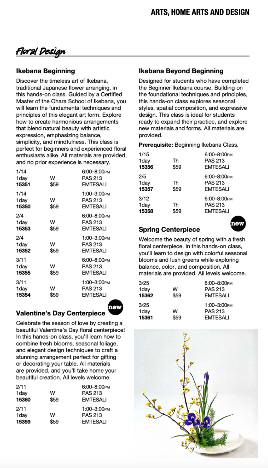 Schedule of Ikebana Classes & Events in 2025